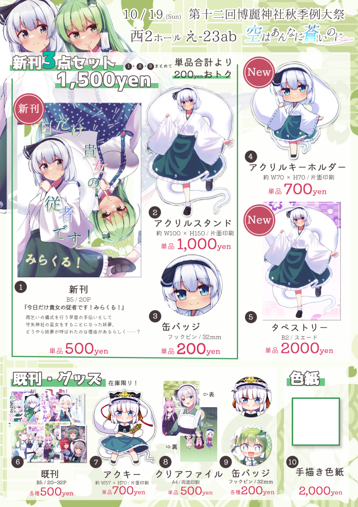 ・完売、色紙入荷等の頒布情報はTwitterにて(なるべく)リアルタイムにお伝えします。
